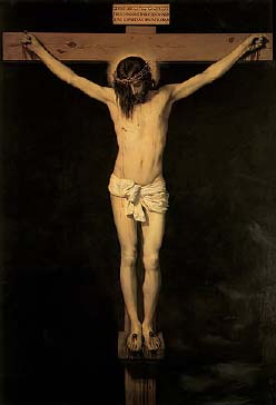 hung on a cross on a hill named Golgotha. In his agony, endured for