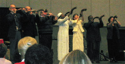 April 6, 2004, seven shofar blowers (pictured here) commenced the annual