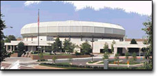 So we can see that from the very central point of our city there is a testimony of faith in Jesus Christ through baptisms being performed at The Big Spring, and an official Huntsville Historical Society signpost to declare it. Water in Scripture is often compared to the Word of God. Ephesians 5:26 says, that Christ sanctifies and cleanses His Bride "with the washing of water by the word." So part of God's purpose for our city has to do with declaring the Word of the Lord which is living and active like a flowing spring (not a stagnant pond). John saw "a pure river of water of life, clear as crystal, proceeding from the throne of God and of the Lamb" (Rev. 22:1). Ezekiel saw the temple that will be built during the millennial reign of Christ and "there was water flowing from under the threshold of the temple toward the east." This water flowed to become a very deep river reaching the Dead Sea and healing the waters. Likewise, the Big Spring in Huntsville flows all the way to the Tennessee River. Finally, this large rock cliff at Big Spring Park is reminiscent of the rock at Meribah which Moses spoke to and brought forth water for the children of Israel to drink in the desert (Ex. 17:5-7). God compares Himself to, "the fountain of living waters," in Jeremiah 2:13, and Jesus said in John 7:37 that, "If anyone thirsts, let him come to Me and drink. He who believes in Me, as the scripture has said, out of his heart will flow rivers of living water." My desire for Huntsville is the same as Martin Luther King's desire for our nation when he quoted from Amos 5:24 saying, "Let justice flow like a river, and righteousness like an ever-flowing stream!" The Von Braun Center (VBC)